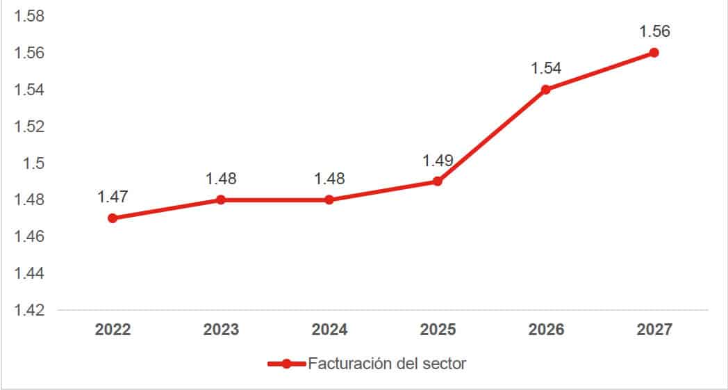 PREVISIÓN DEL VALOR DE LAS VENTAS DEL SECTOR, 2022-2027 Expresado en miles de millones de euros