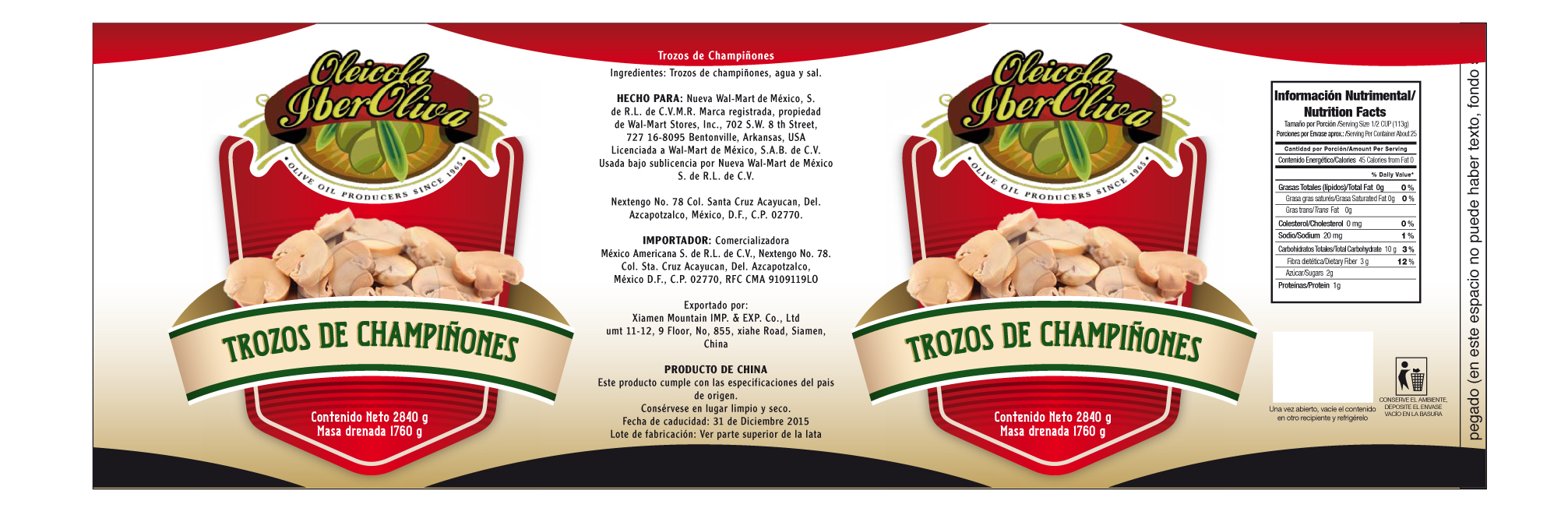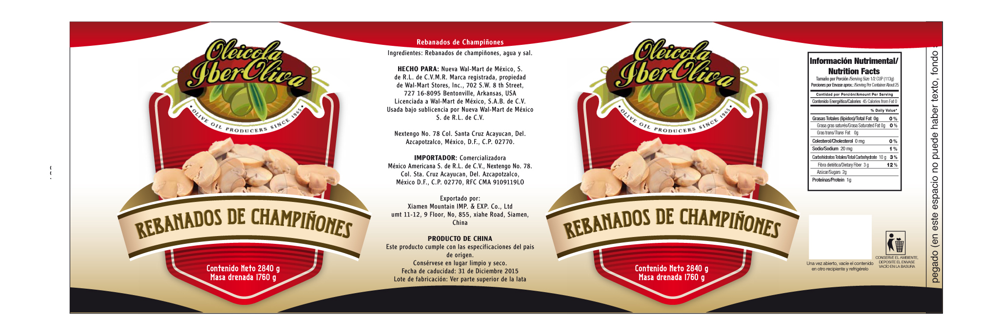 Nuestro cliente nos remitió los diseños que utilizaba bajo su marca blanca «Bakers & Chefs» para comercialización de champiñones enteros y laminados. Nos solicitó una mejora sustancial en la imagen de los mismos y la sustitución de la marca actual por una nueva marca «Iberoliva».
