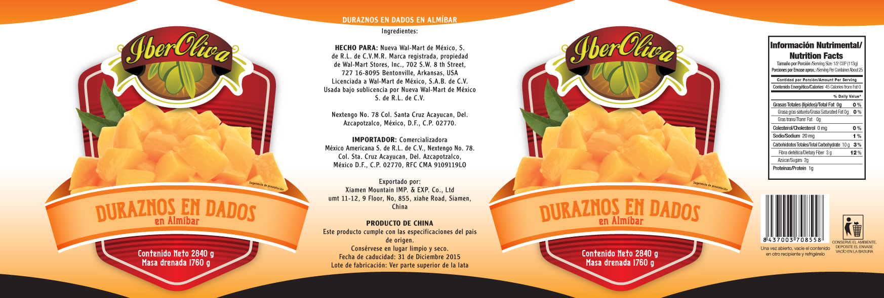 Diseño de etiquetas exportación Méjico