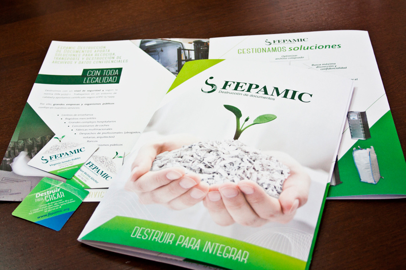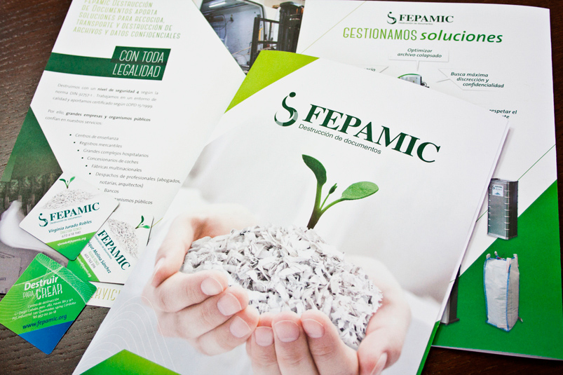 Siguiendo la filosofía de Fepamic Destrucción de Documentos, y siendo coherentes con su filosofía, todo el material se ha impreso sobre papel reciclado 100% Cocoon Silk.