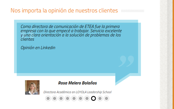 Por último, y como no podía ser de otra forma, hemos tenido presentes a nuestros clientes en la nueva página web. Por un lado, su opinión, que es lo que mueve y da sentido a nuestro trabajo; y por otro lado, enlaces a nuestros perfiles en redes sociales (Facebook, Twitter, Linkedin y Google +), que día a día nos permiten estar más cerca de nuestros clientes, para seguir “Unidos en la Comunicación”.