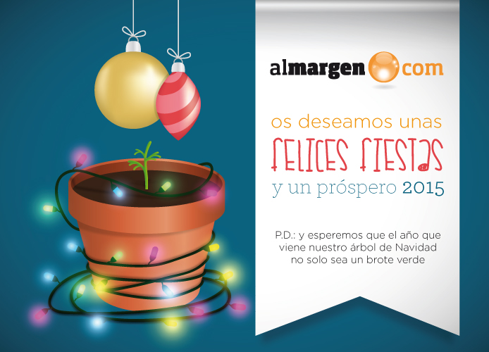 En Al Margen Comunicación os deseamos Felices Fiestas y esperamos que el año que viene se cumplan todos vuestros deseos, o por lo menos gran parte. Por nuestra parte seguiremos a vuestra disposición intentando que 2015 sea un año mejor, por empeño y dedicación no va a ser, a ver si entre todos hacemos que el 2015 sí sea un año de prosperidad.