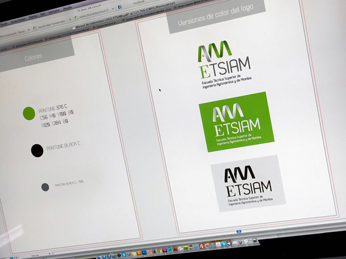 El diseño gráfico de la imagen de ETSIAM busca ofrecer su cara más tecnológica pero referenciando en algunos detalles «lo clásico», como en la «E» capital, en la que utilizamos una romana dejando el resto del logotipo con una fuente de palo neutra, que hace que el conjunto sea equilibrado.