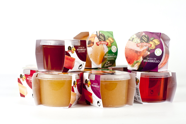 Membrillo San Lorenzo se adelanta a sus competidores con una presentación más adaptada a la demanda del consumidor actual, tanto en el formato más adaptado a la realidad social en los hogares, como en productos sin gluten aptos para celiacos. El producto se puede ver a través del envase ya que la fajilla lo permite.