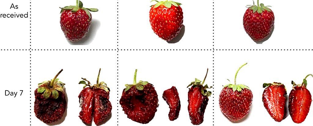 Lo que ayuda a que sea uno de los materiales más resistentes de la naturaleza. El spray mantiene los alimentos frescos durante mucho más tiempo, como demostraron los investigadores en su estudio y pruebas sobre fresas y plátanos.