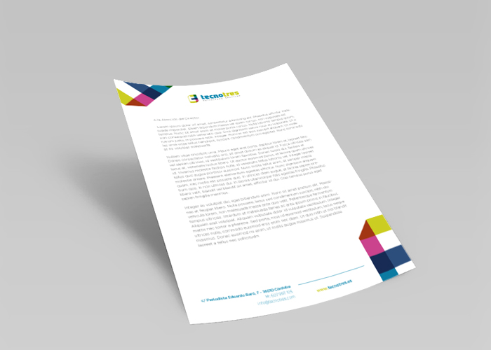 Para el diseño gráfico de marca de Tecnotres teníamos la premisa de que la identidad de la empresa fuera reconocible, fresca y con aire moderno.
