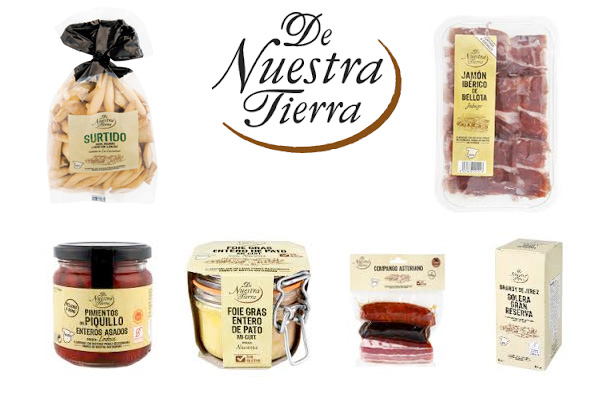 Por otro lado Carrefour ha lanzado la línea de marca blanca «De Nuestra Tierra» (productos símbolo de nuestra gastronomía tal y como lo publicitan) donde incluye una serie de productos con aire «local” que quieren tener un halo tradicional y artesano en la conformación de su presentación. No pasan de ofrecer un aspecto cutre en cualquiera de sus presentaciones.