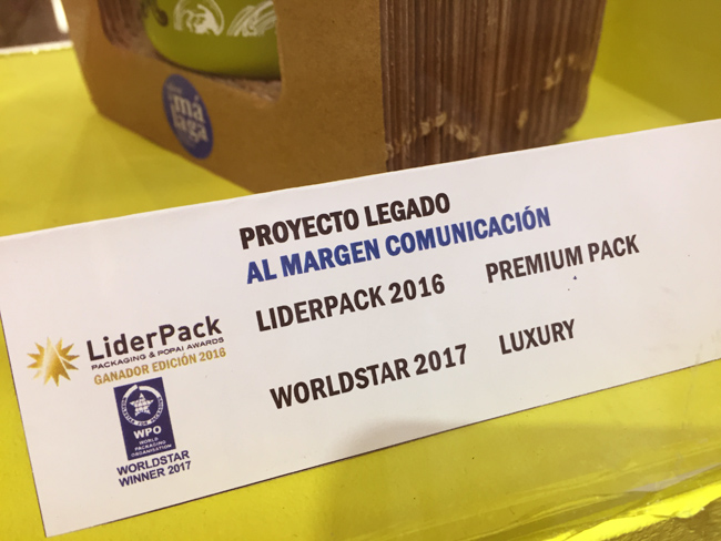 Además de recibir el premio la organización nos reservaba una sorpresa, realizó una exposición de todos los proyectos ganadores de LiderPack 2016 en la zona Vip y de Showroom. Nuestro diseño para aceite de oliva Legado se expuso junto al resto de los ganadores españoles de premios WorldStar 2017. Donde también hemos resultado ganadores en la categoría Luxury y cuyo premio nos será entregado en Mayo de este año. La presentación de aove Legado brilló con luz propia y fue centro de atención de los asistentes y visitantes a la gala.