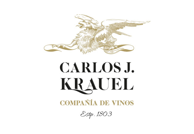 El diseño para la marca «Bodegas Krauel « parte de un animal mitológico que estaba muy presente en la iconografía de la bodega no así en sus etiquetados. El Grifo es en su parte delantera un águila gigante de plumas doradas afilado pico y garras poderosas, su parte inferior es un león de pelaje amarillo con una larga cola de reptil. Es un emblema heráldico utilizado por la familia y que representa la fuerza, el valor y la vigilancia.