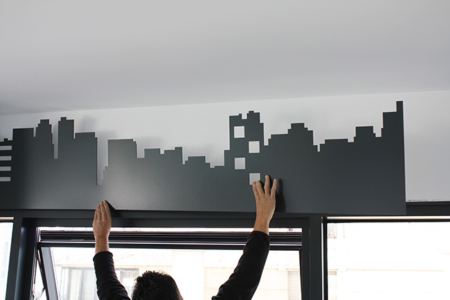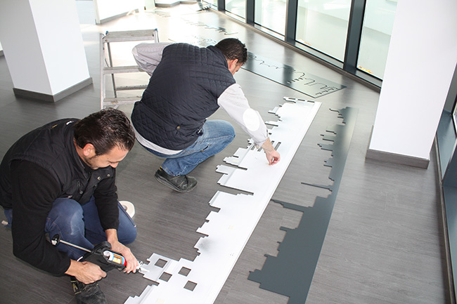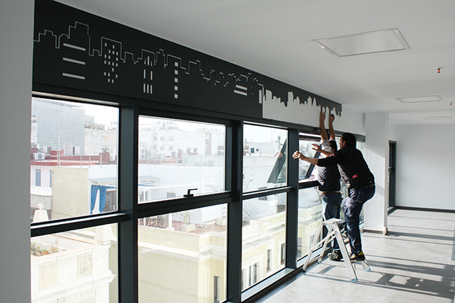 Diseño y montaje de frontis skyline en sala de trabajo técnico