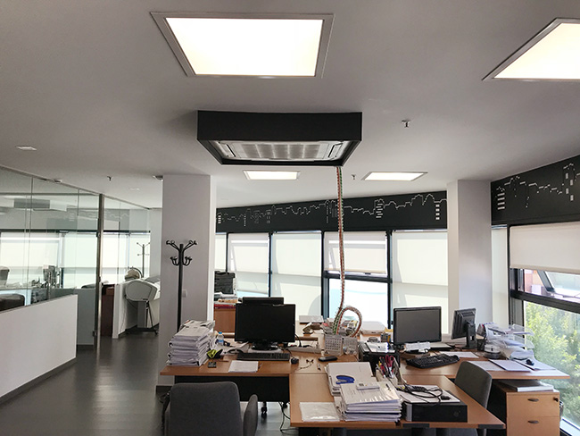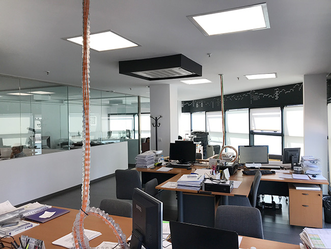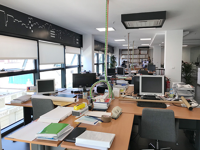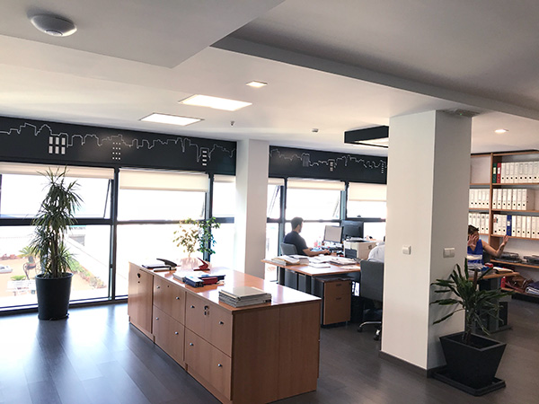 Hoy os dejamos como ejemplo el proyecto para las nuevas oficinas del Grupo de Empresas Valiente Garrido donde hemos realizado un trabajo de decoración interior de espacios de trabajo. El problema del cliente era como cubrir el muro blanco que separa el cierre metálico de la cristalera exterior con el techo de la zona de trabajo técnico, que creaba un espacio de pared en blanco muy vacío con dos materiales que no se conjuntaban.