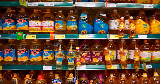 Aceites vegetales en lineal de gran superficie en China, soja, el arroz, o palma los más consumidos.