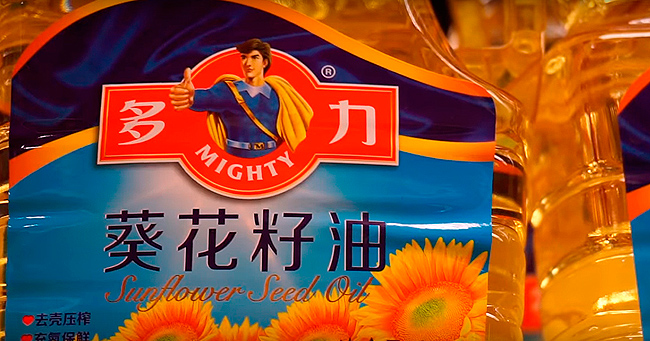 Diseño de aceite de girasol Mighty «Poderoso» en China. La traducción «Más Fuerza o Mas Energía»
