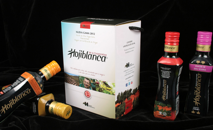 Os dejamos este nuevo diseño de packaging que hemos realizado al Grupo Hojiblanca con una producción de 300 unidades para un pack de regalo de promoción de su nueva línea de aceites y vinagres en formato de 250 ml. La caja soporta un peso de 3,6 kg. Hasta este momento esto era impensable, la creatividad de Al Margen Branding & Packaging, una pequeña agencia de publicidad de Córdoba lo ha convertido en una realidad.