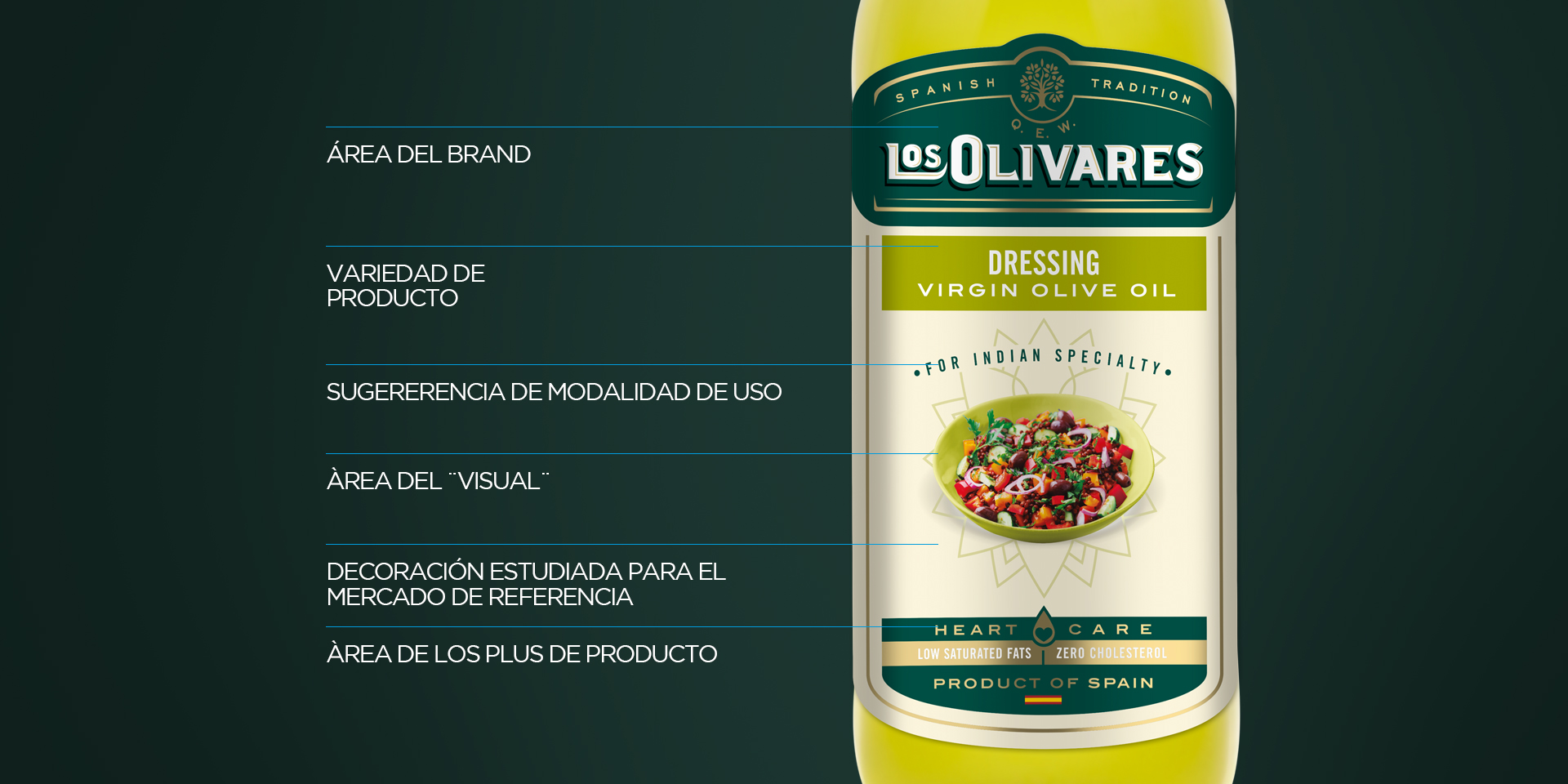 El posicionamiento del packaging de aceite de oliva para la India Los Olivares