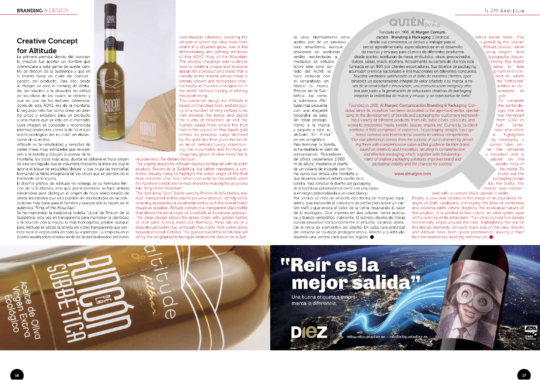 El packaging para aceite Altitude en Infopack. Mágnifica noticia esta semana, donde vemos publicado otro de nuestros proyectos en la revista Infopack. Esta vez este diseño de packaging para aceite premium que realizamos este año pasado para Almazaras de la Subbética.