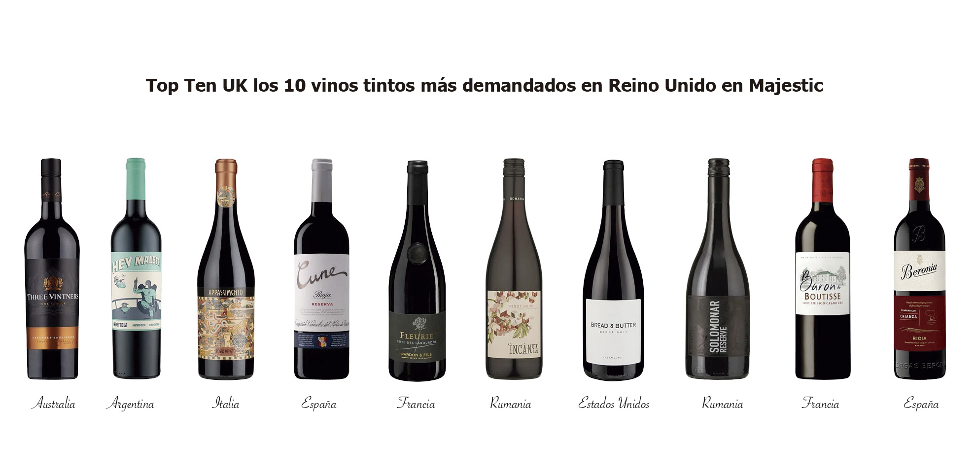 Packaging for Red Wine Top Ten UK : los 10 vinos tintos más demandados en Reino Unido en Majestic
