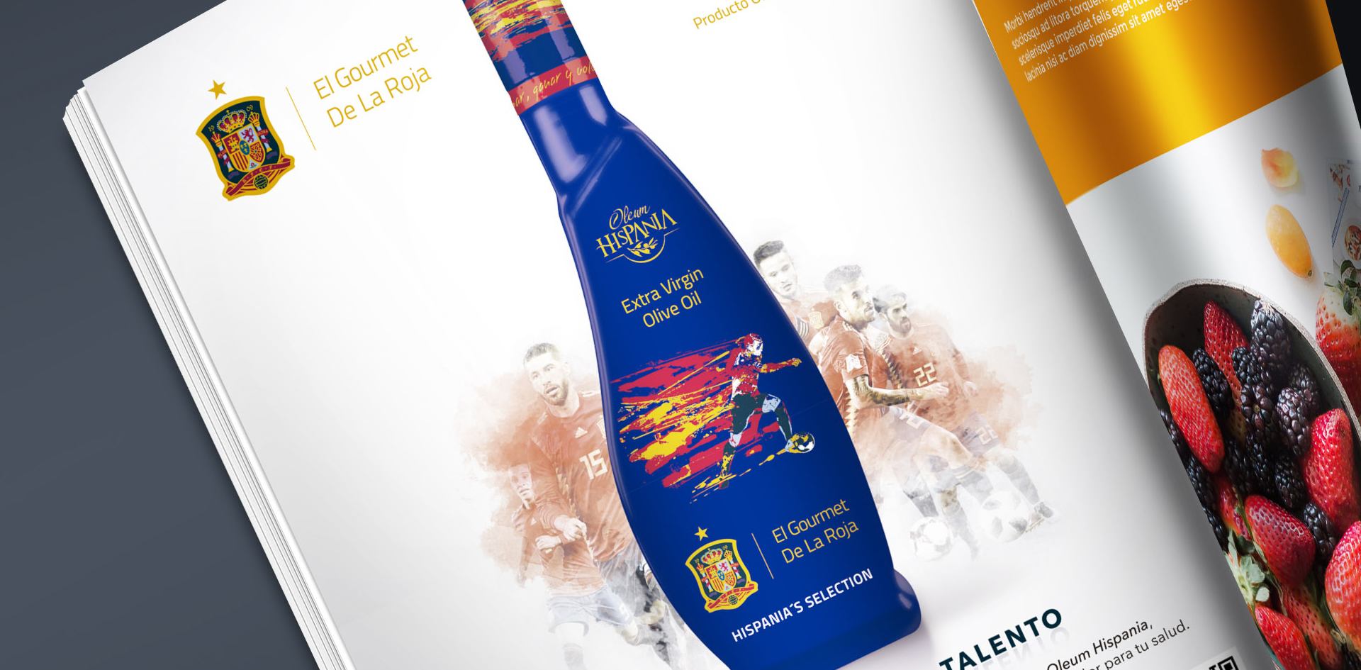 Además del diseño del packaging para el Aceite de Oliva Virgen Extra de Oleum Hispania para “El Gourmet de la Roja” se han diseñado otros materiales para complementar la estrategia de marketing y promoción del producto.