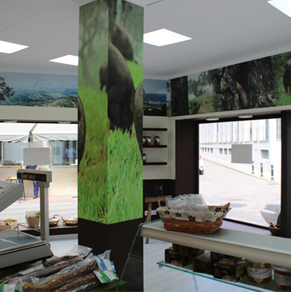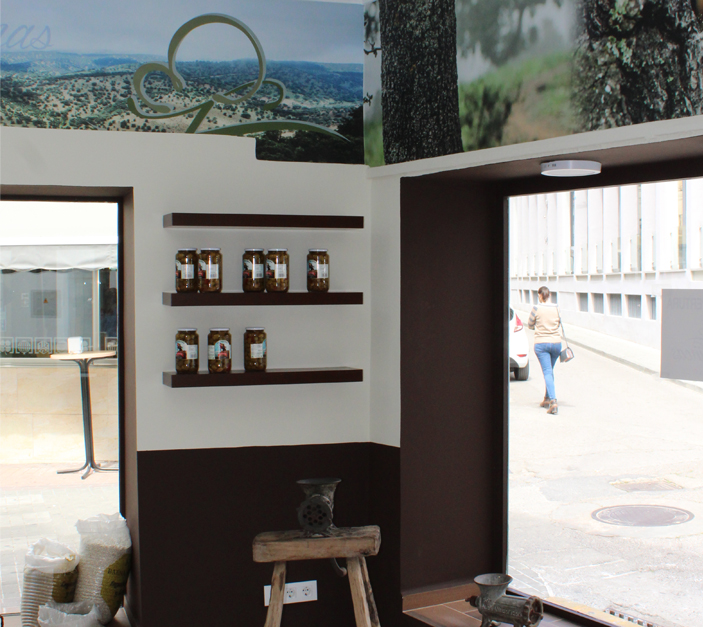 En la decoración interior hemos buscado que la tienda, mantenga la homogeneidad de su imagen corporativa pero que respire auténtico sabor a productos ibéricos, para ello hemos cuidado los detalles sin perder la funcionalidad en un espacio reducido