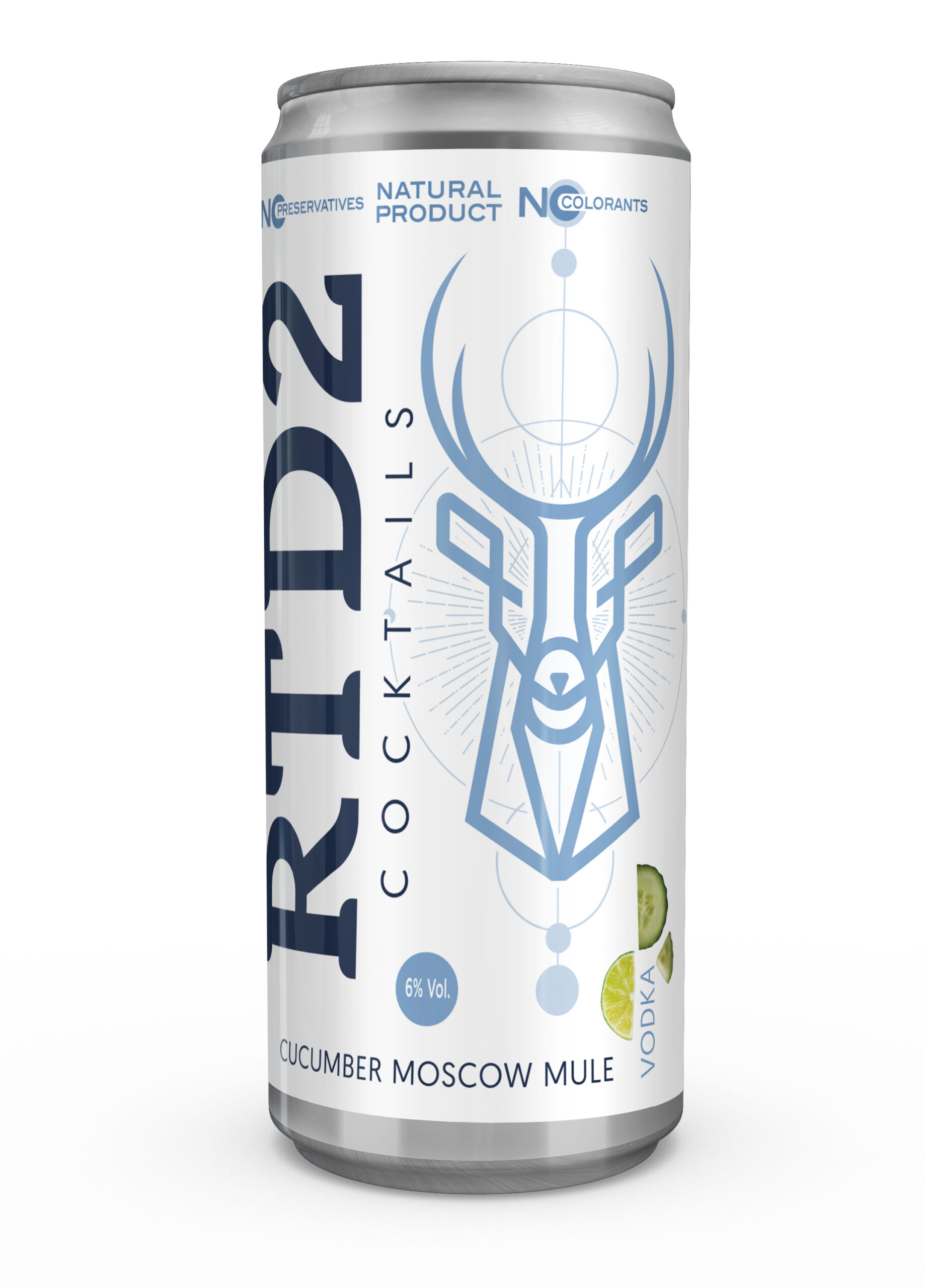 RTD2 auna modernidad y elegancia en el diseño de su etiqueta mediante la técnica de contraposición de acabados metalizados y zonas mate en la lata. Aprovechando la base metalizada del envase aplicamos etiqueta que nos permite unas producciones muy pequeñas siendo más reponsables con el medio ambiente.