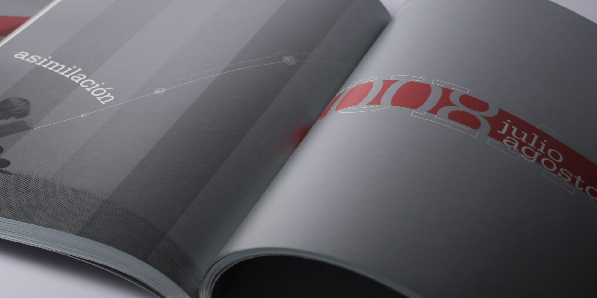 La maquetación interior esta realizada por columnas que van presentando las noticias de cada mes. Las noticias van enlazadas graficamente por medio de este nudo de comunicación. Para la impresión del interior se utilizo papel reciclado ciclus Offset de 140 grs. impreso a cuatricromía más una quinta tinta pantone plata.