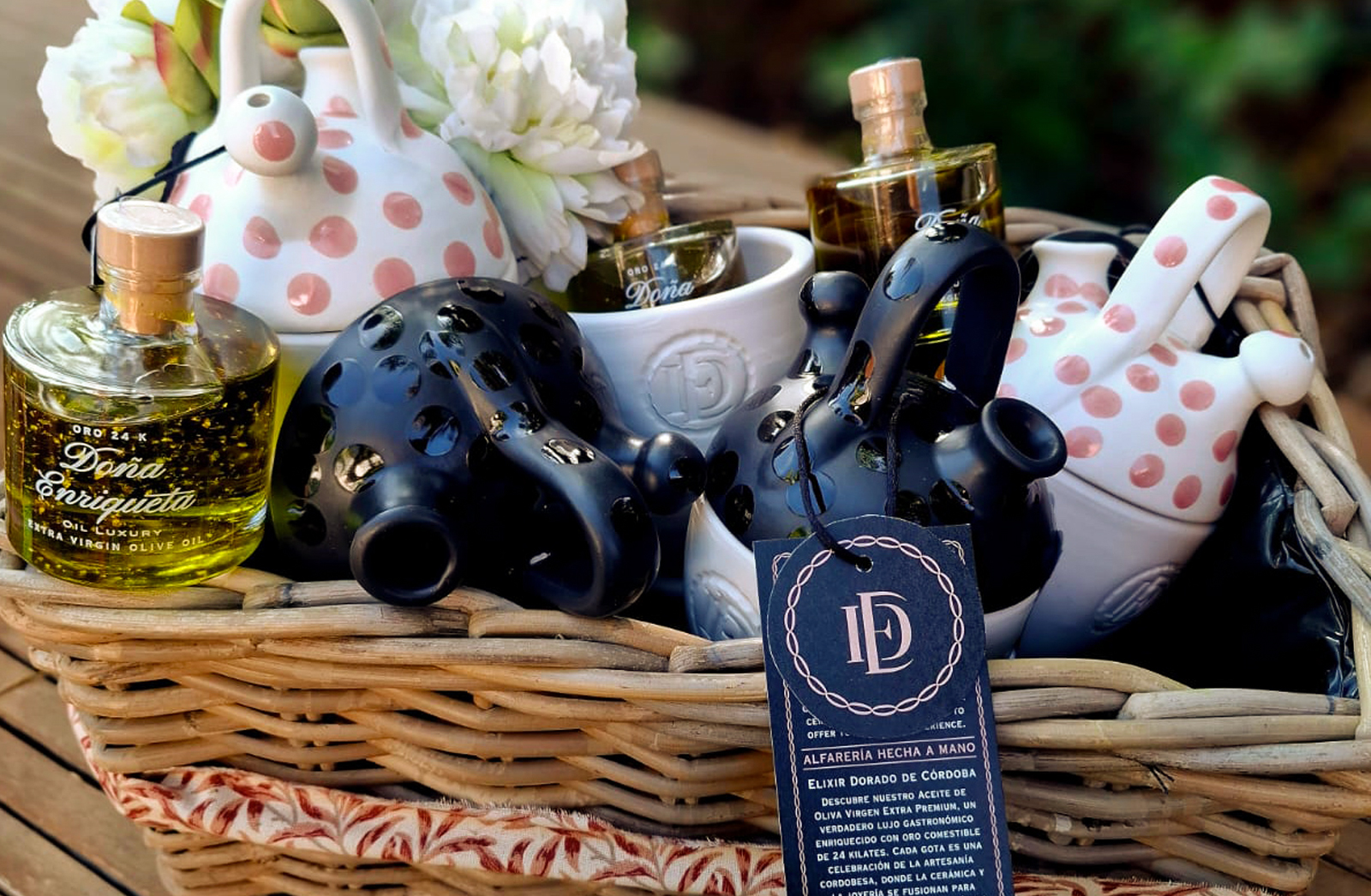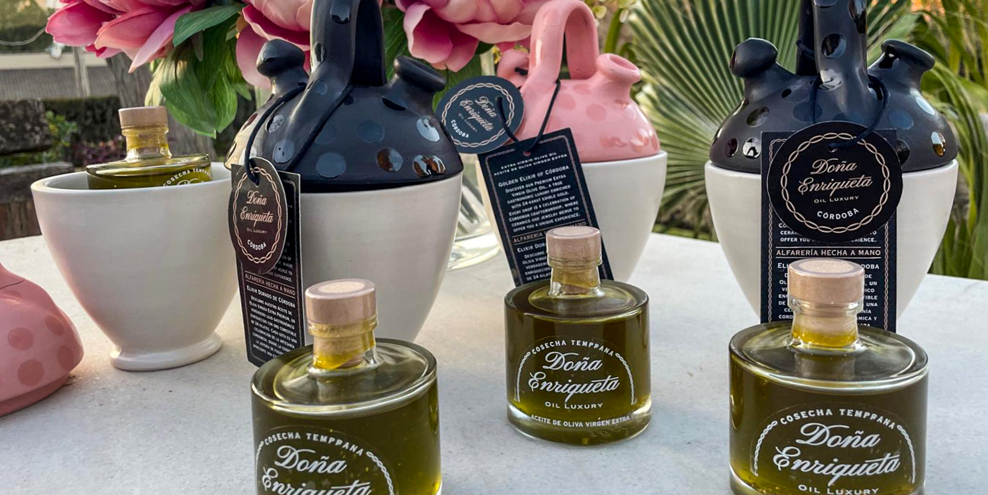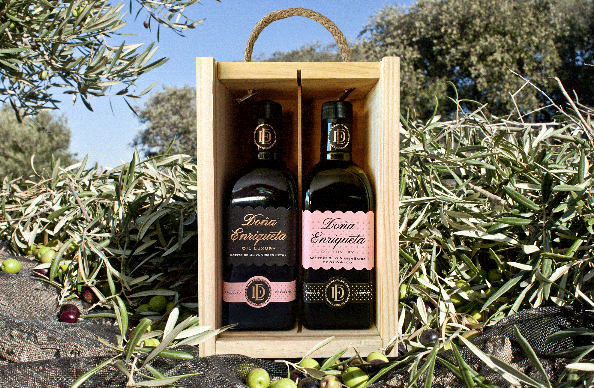 En el competitivo mundo del Aceite de Oliva Virgen Extra, este producto debe destacar no solo por su calidad, sino también por su presentación. Con esta idea venía nuestro cliente, un packaging diseñado especialmente para la exportación, distinto, diferenciador y que a primera vista resultase único. ¿Cómo dar ese carácter premium con algo diferente? La botella dentro de un botijo decorativo exclusivo para la marca Doña Enriqueta, de esta manera tendríamos la presentación de alta gama para este aceite que además, cuenta con presentación más comerciales con botella y estuche.
