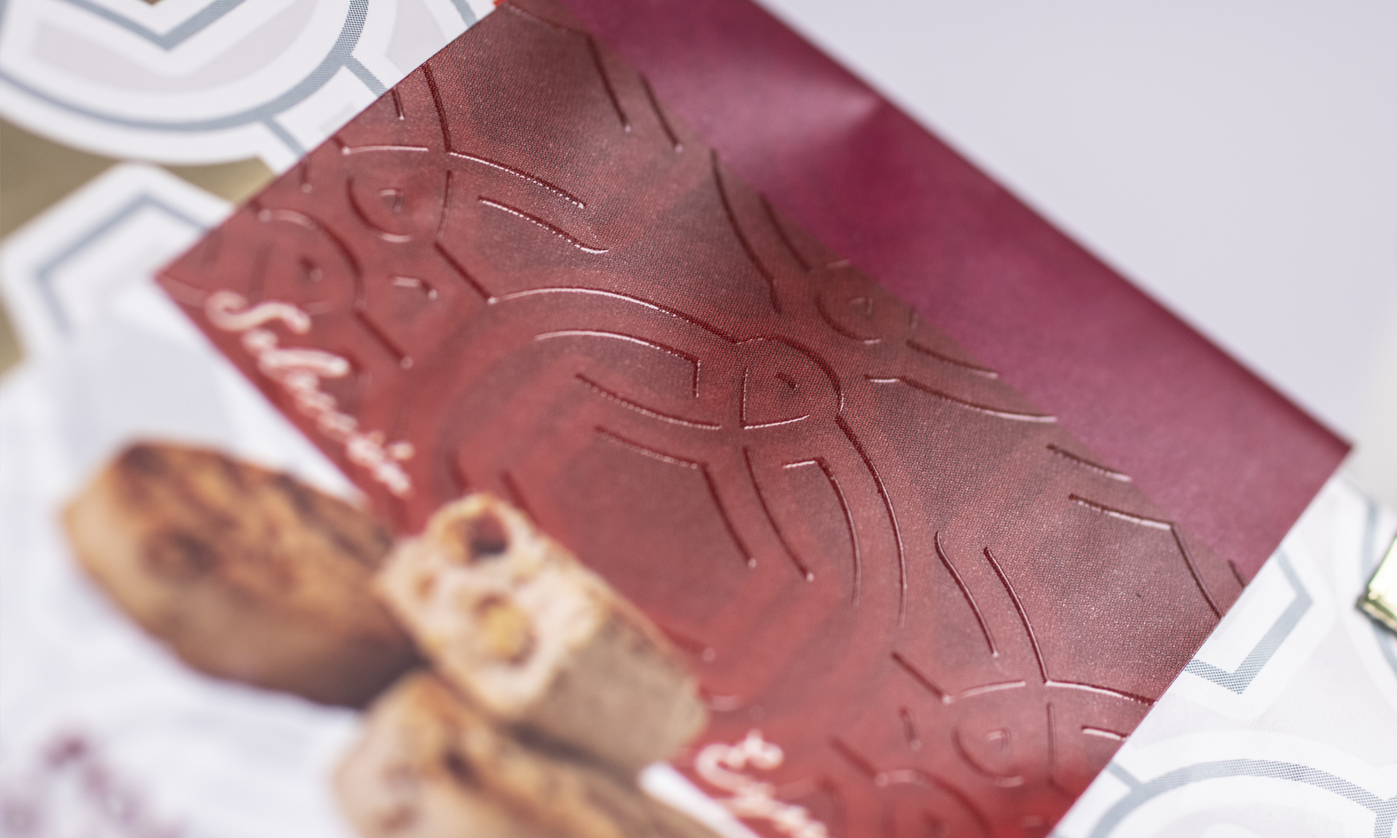 Se ha desarrollado un concepto de diseño fuera del concepto de producto tradicional. Una gama de packaging singular y diferente, con un concepto de diseño más modernista que los habituales en el sector. El packaging ofrece la particularidad de tener un diseño genérico para todos los productos en la bolsa contenedora, generando menos coste en el proceso de producción. En cuanto al diseño gráfico de la bolsa, creamos un motivo repetido en toda ella, resaltando elementos del mismo con los diferentes colores del packaging. Además se ha añadido una tinta metálica oro para dar un toque más gourmet a esta gama de productos de alta calidad. Para diferenciar los productos se han diseñado unas fajillas a modo de precinta adhesiva mediante etiqueta de rollo, en la que se distingue claramente el producto y además se presta a aportar terminaciones que en la bolsa serían inviables, en este caso se han resaltado elementos y textos con un barniz UVI brillo que destaca lo más importante y lo separa del fondo mate del papel reciclado.