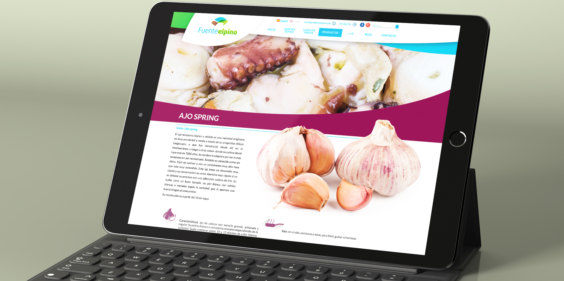 Fuente el Pino nos encargó dentro de su proyecto de renovación del branding de su marca, la creación y diseño de una web corporativa que ofreciese una imagen fiel y potente de la misma en internet. Dedicada a la producción, transformación y comercialización de ajo y cebolla desde 1989, Fuente el Pino comercializa ajo y cebolla a las principales cadenas de alimentación de Europa, Centroamérica, Canadá, Emiratos Àrabes, Cabo Verde o Marruecos.